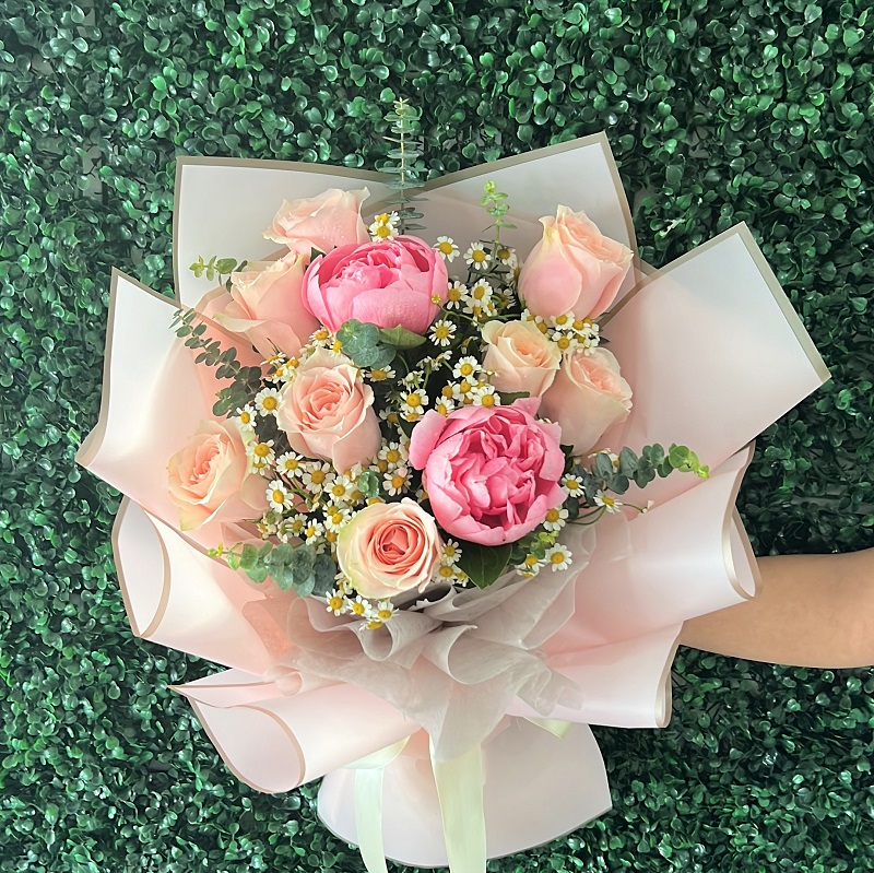 HP1002 Peonies & Roses Hand Bouquet