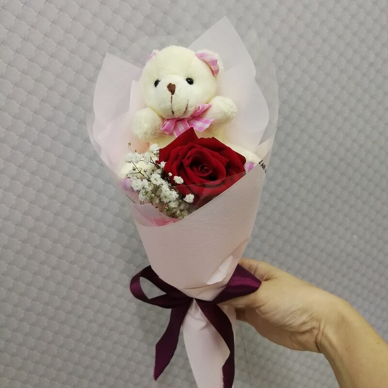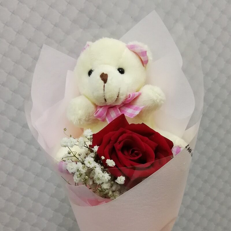 HR0102 Single Rose with Mini bear (Self pick-up only)