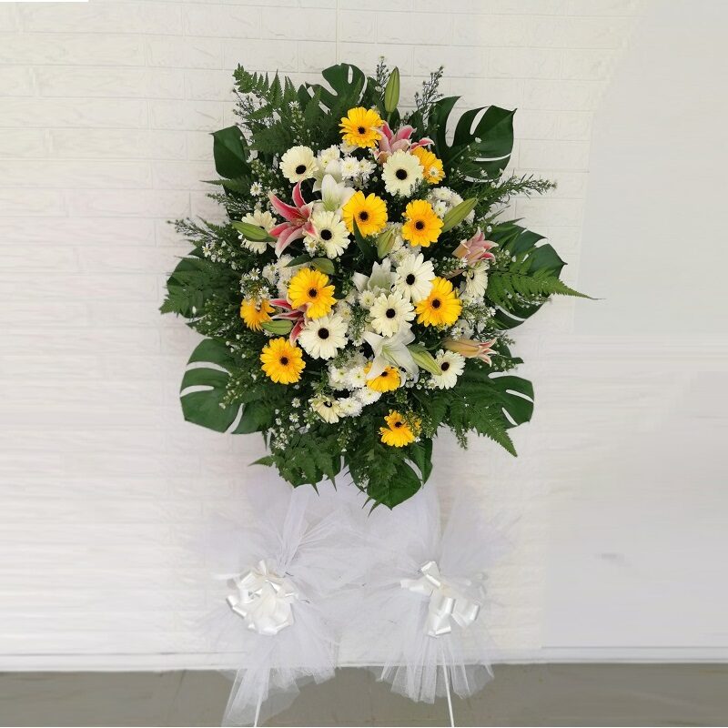 Standing wreath arrangement.