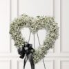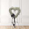 Funeral flower arrangement with baby’s breath into a heart-shaped wreath.   50 cm x 50 cm