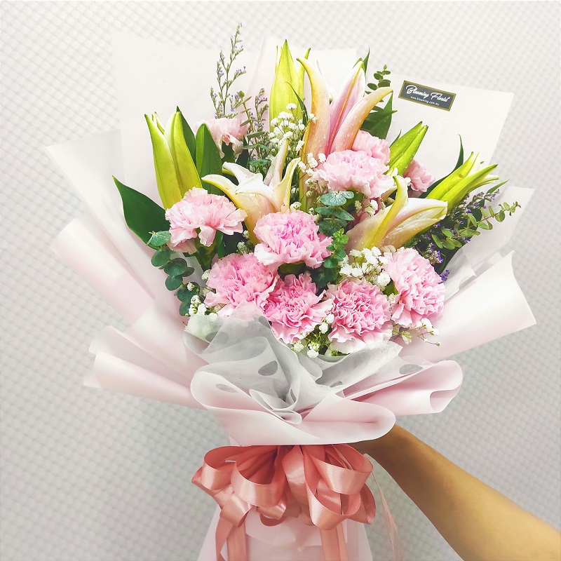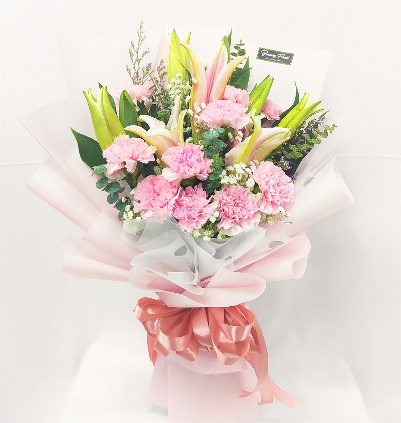 A beautiful arrangement of pink carnation with lilies in a hand bouquet will be the best gift for your mom to make her special day more special. It will do magic and make her feel fresh throughout the day. So, make an occasion unforgettable to her by sending this wonderful gift of love.