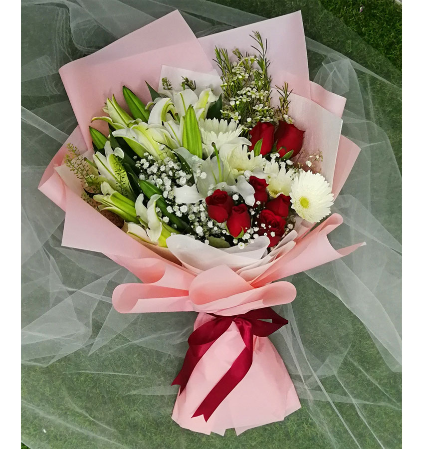HL1004 Roses Gerbera Lilies Hand Bouquet