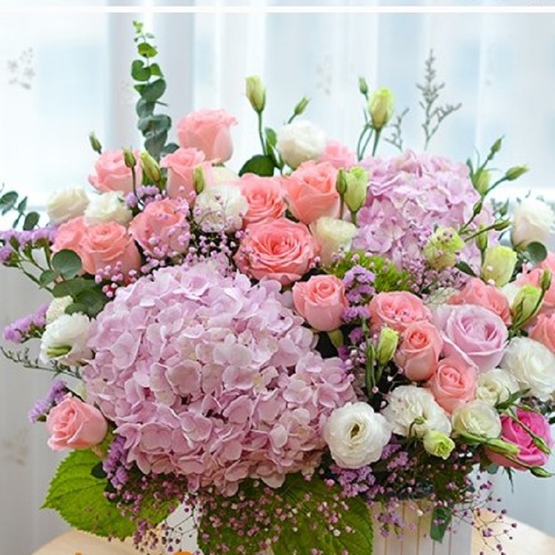 Simply stunning, this supersized basket of beautiful fresh pink hydrangea, pink roses and white eustoma will take their breath away.