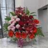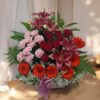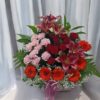 9-10 red roses. 9-10 pink carnation, 6 daisy, 2 stalks pink lilies with baby breath.